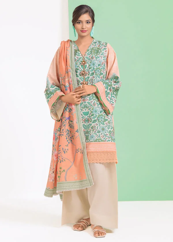 Digital printed light green dobby fabric unstitched 3piece suit Rs: 7,990.