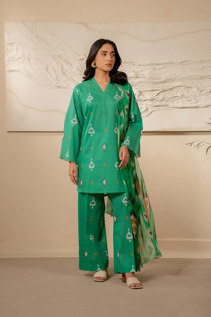 Printed lawn lawn 3pc unstitched green color suit Rs:6,900 Rs:5,520Â only.