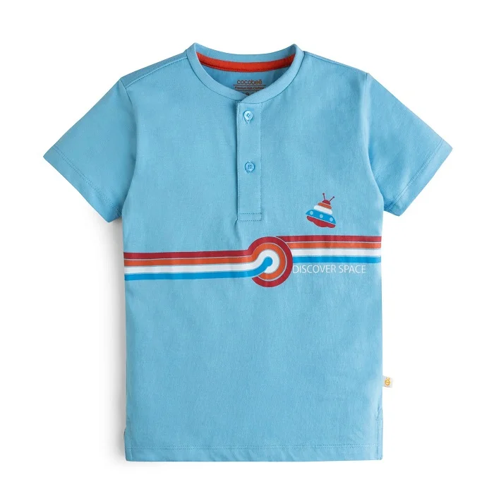 Sky blue color spacing printed henley Rs:1,690 Rs:845.