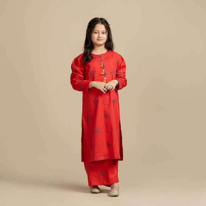 Grand red embroidered two-piece suit for girls wear Rs:4,390 Rs:3,073.