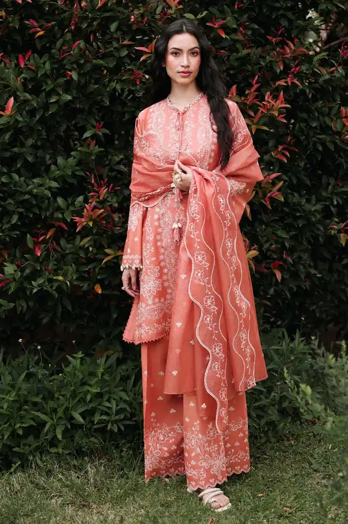Coral lawn 3pc printed & embroidered suit for women Rs:9,550.