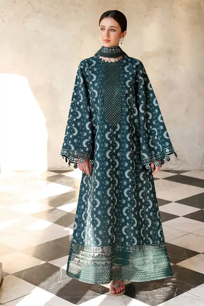 Green Color Printed Lawn 3Pc Suit With Embroidered Unstitched eid festive wear suit Rs:10,550/- only.
