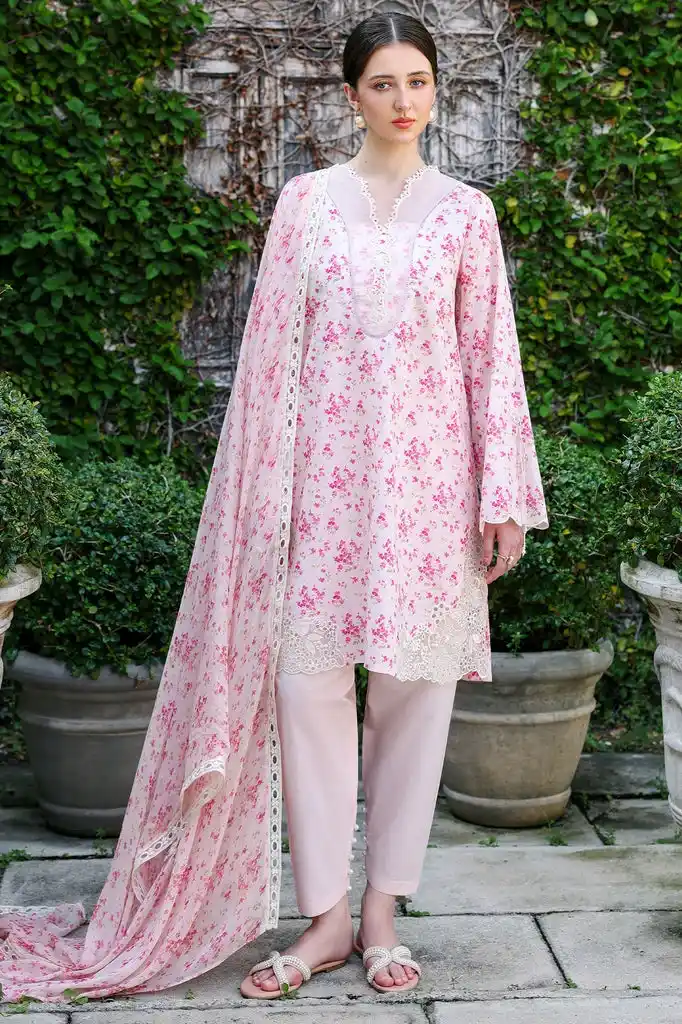 Pink lawn 3pc printed suit Rs:7,950.