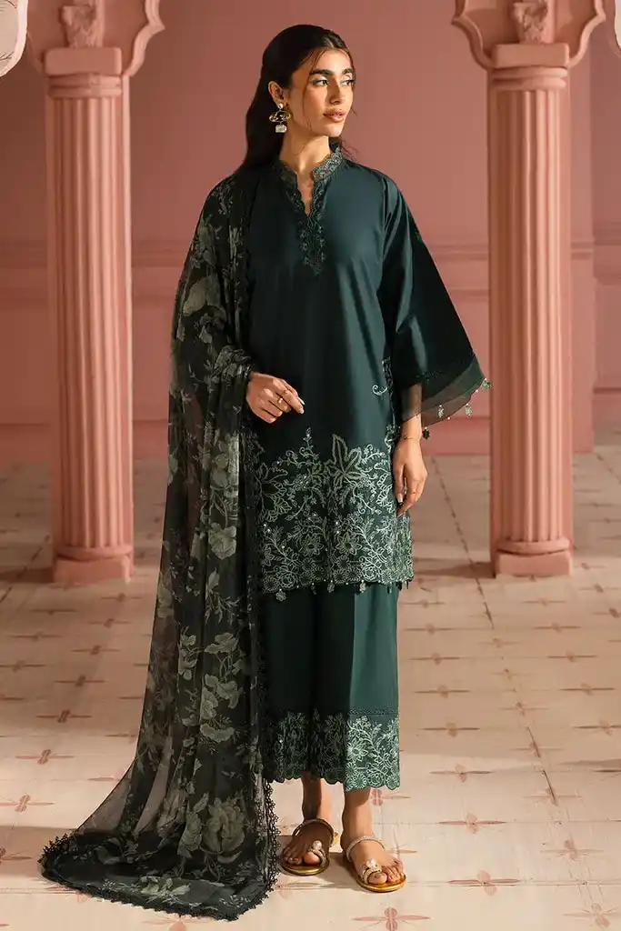 Green lawn 3 piece embroidered unstitched suit Rs:12,550 Rs:8,780 only.