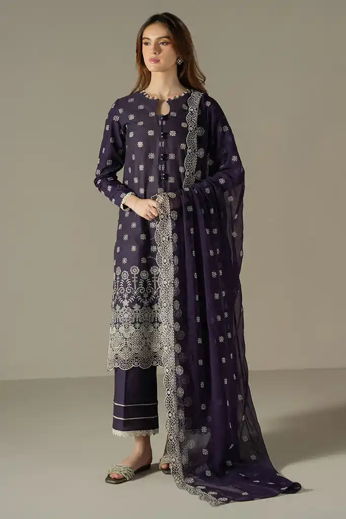 Summer wear embroidered 3 piece lawn purple color suit Rs:12,500 Rs:8,750.