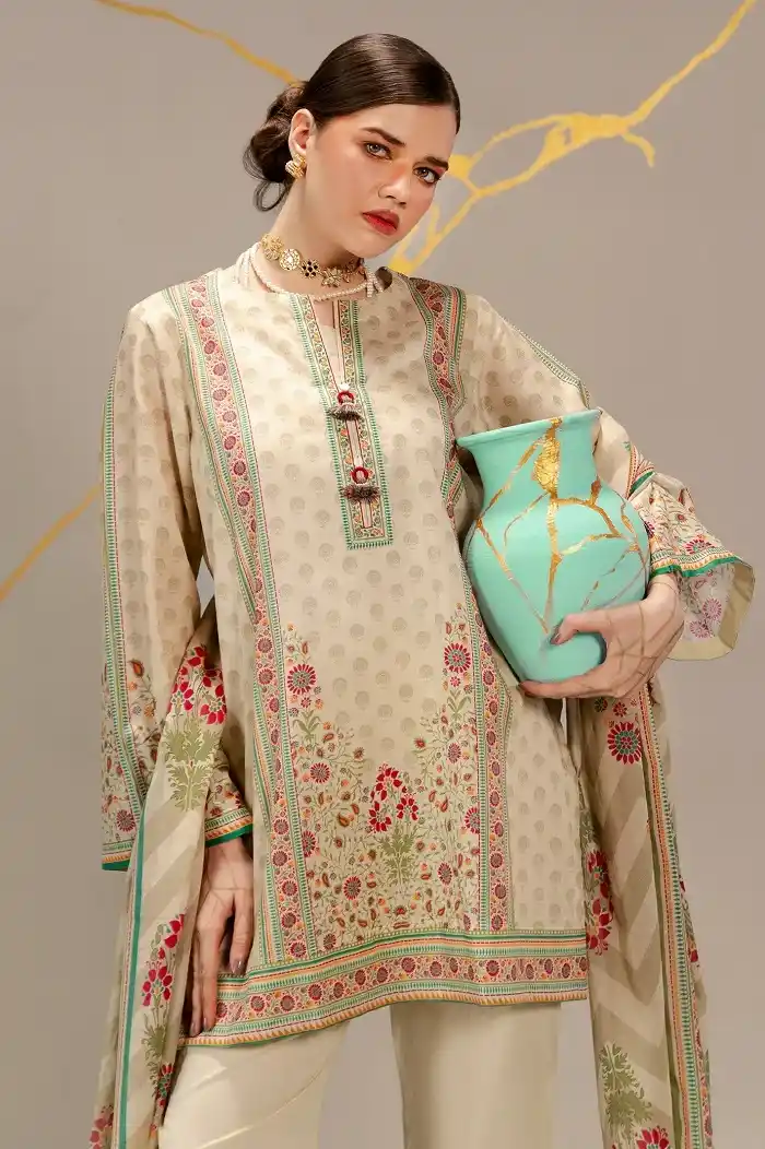 Stylish beige 3pc unstitched suit PKR:3,990 PKR:3,290.