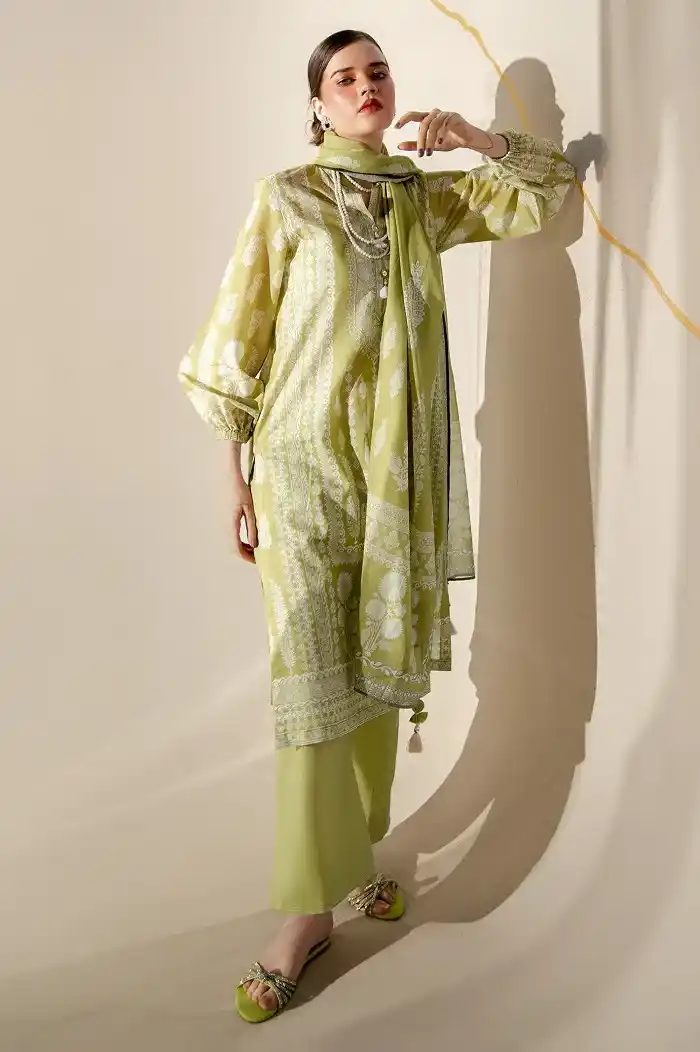 Olive printed 3 pc unstitched suit Rs:3,990 Rs:3,290.