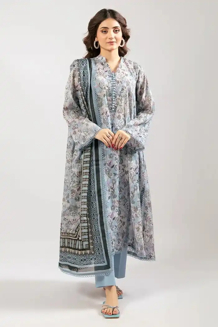 Printed 3pc unstitched blue suit PKR:3,990 PKR:3,290.