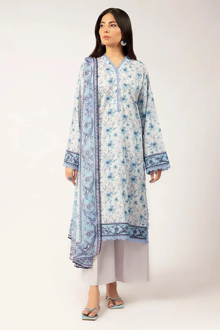 Printed 3pc unstitched blue suit Rs:3,990 Rs:2,990.