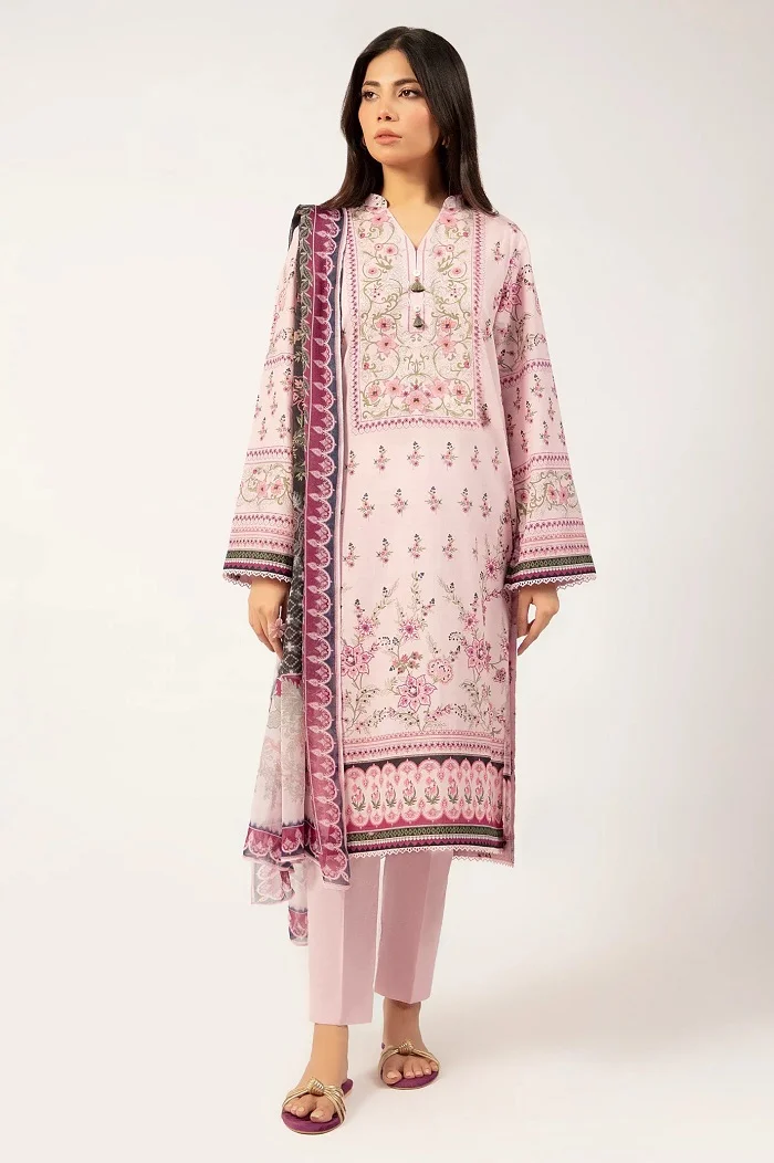 pink printed 3pc unstitched suit Rs:3,990 Rs:2,990 only.