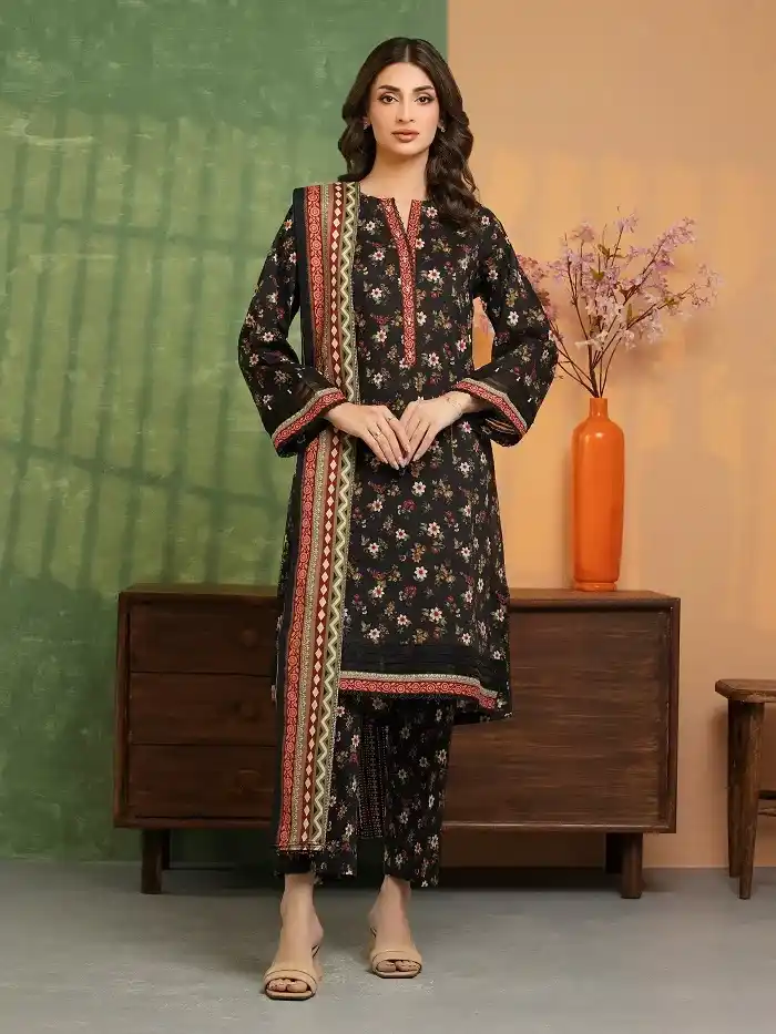 Black printed Khaddar 3-piece khaddar suit Rs:3,500 Rs:2,500Â only.