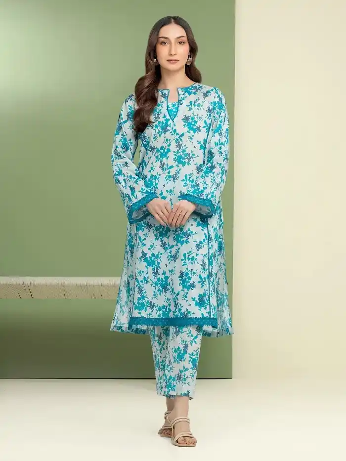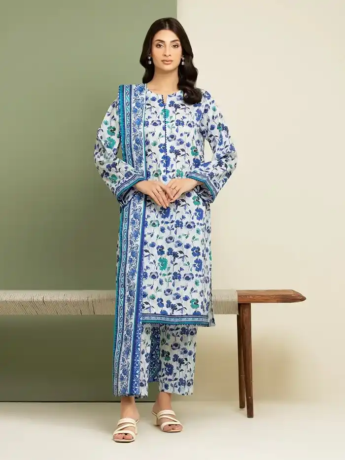 Blue lawn 3pc printed suit Rs:3,300 Rs:3,000.