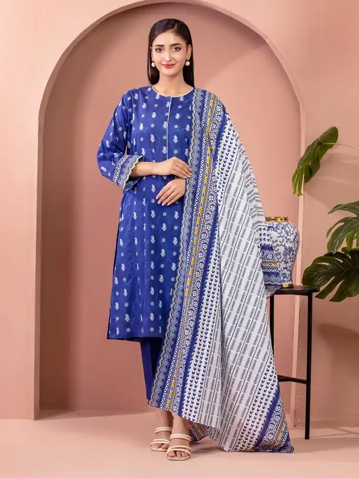 Blue printed lawn 3-piece unstitched suit for women Rs:5,001 Rs:3,300.