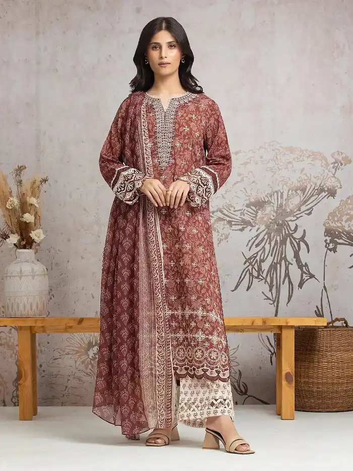 Brown color summer 3pc suit Rs:9,990 Rs:3,996.