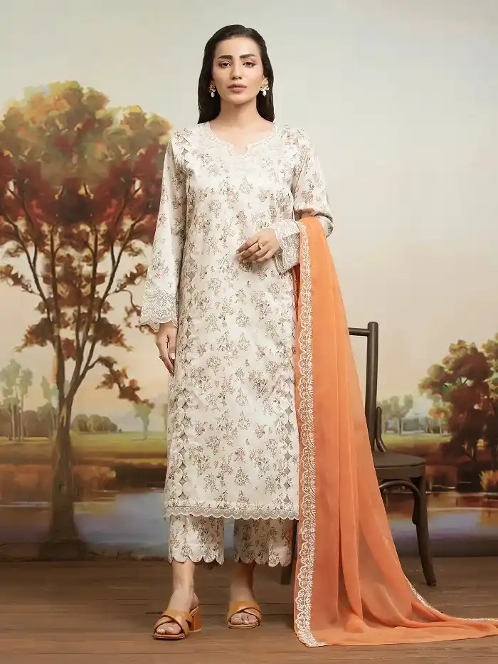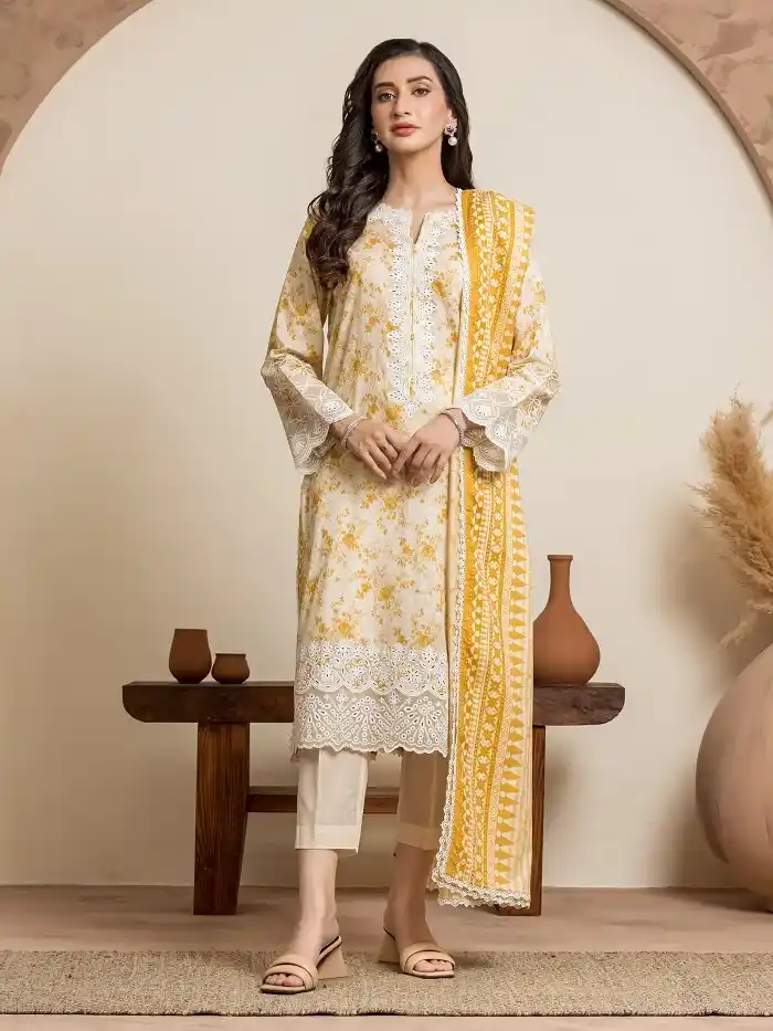Unstitched cream color Edenrobe lawn 3 pieces unstitched suit Rs:3,000 Rs:3,000.