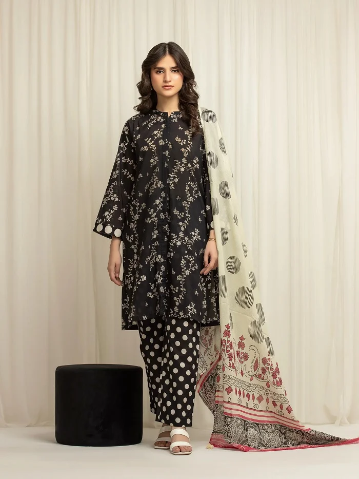 Unstitched Black pret lawn 3 piece suit Rs:6,991 Rs:5,000.