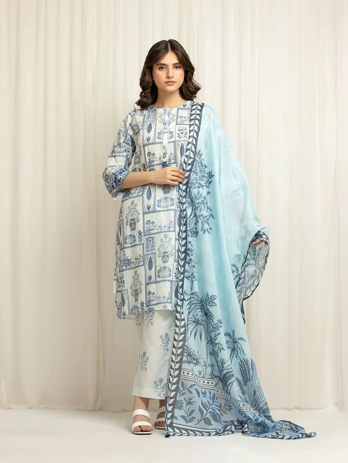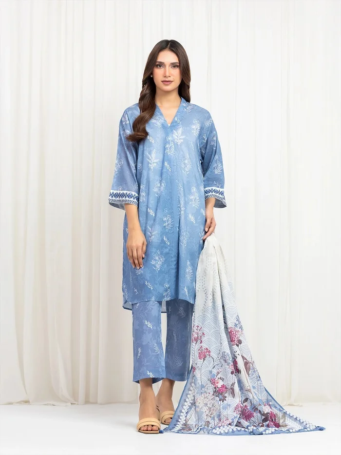 Blue color printed lawn 3 piece suit Rs:6,190 Rs:5,000 only.
