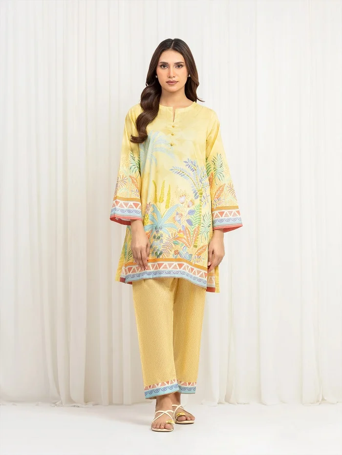 Yellow color lawn floral digital printed shirt, trouser Rs:5,991 Rs:4,000.