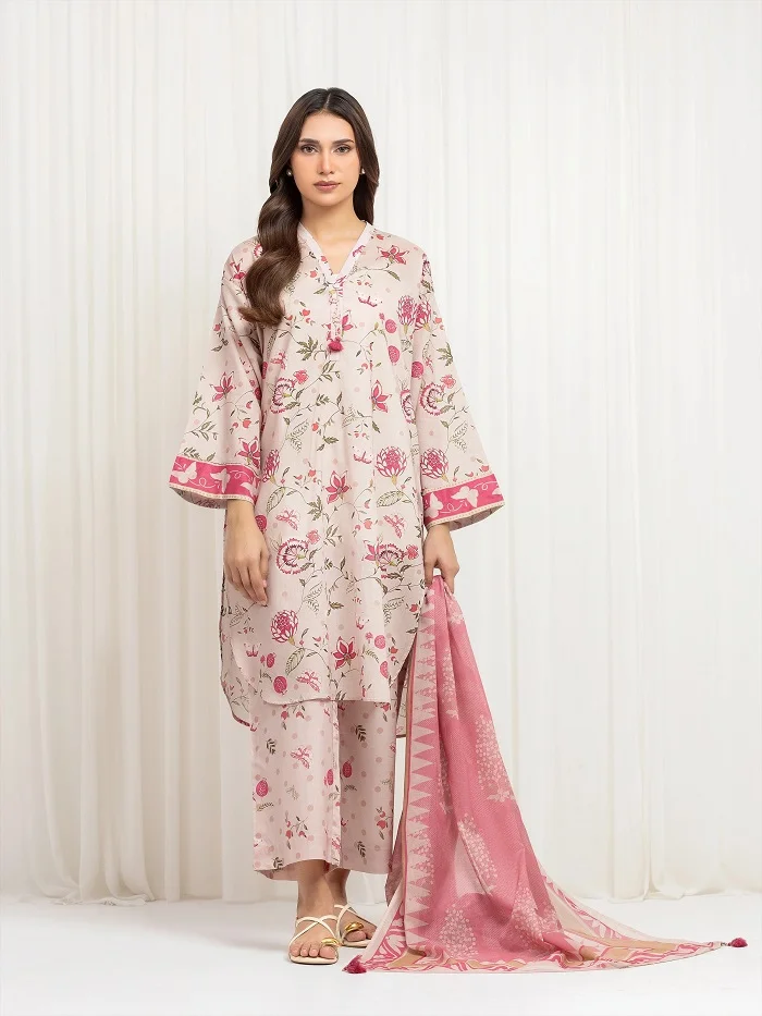 Let’s get a perfect summer look with this pink printed lawn 3-piece suit Rs:6,191 Rs:5,000.