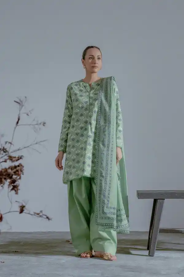 Green color lawn printed 3 piece suit PKR:4,450 Only.