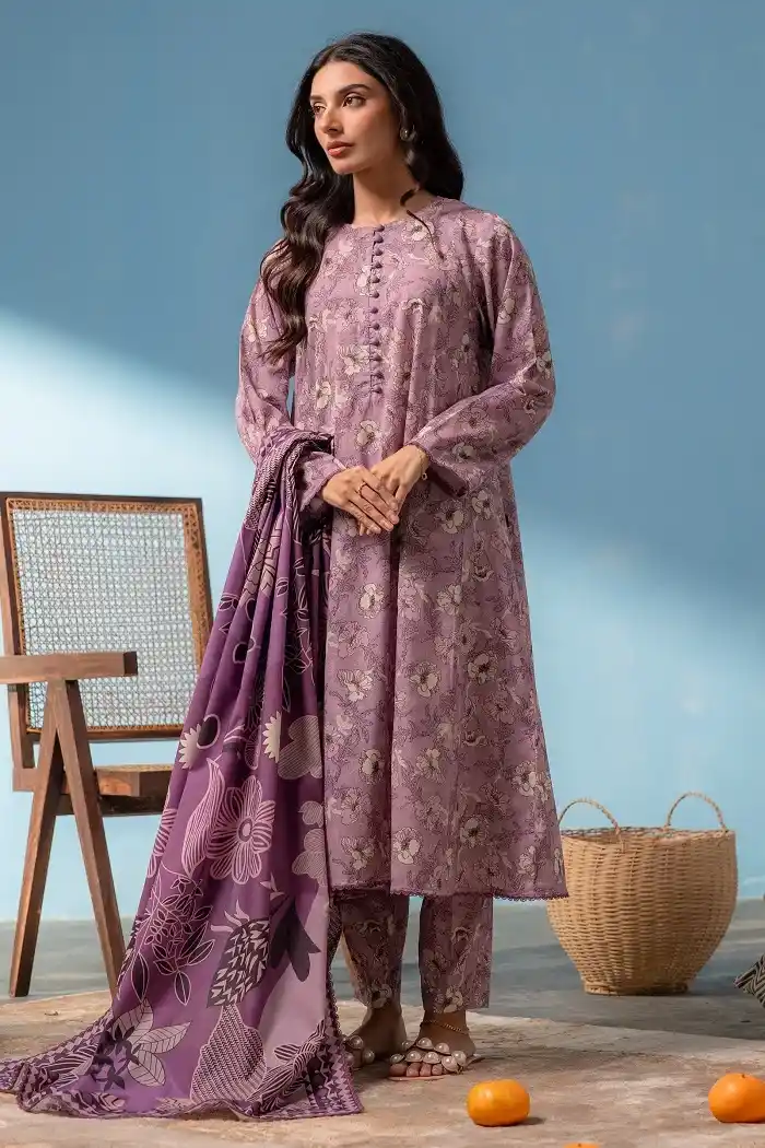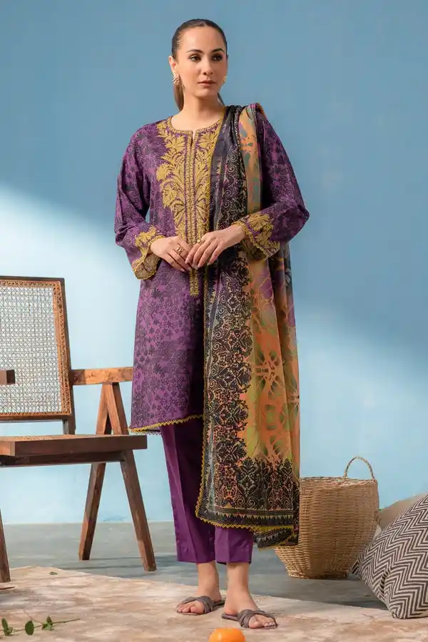 Get this purple-color digital printed lawn 3 piece suit Rs:4,590 Rs:3,901 only.
