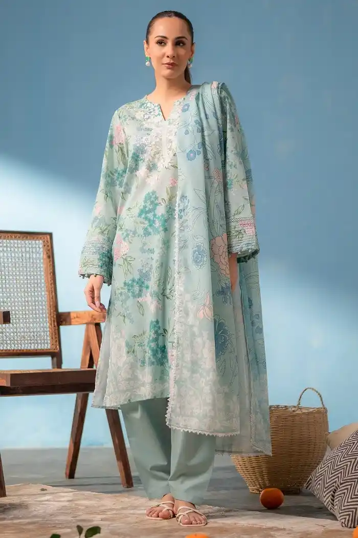 Sky blue color printed lawn 2-piece unstitched suit Rs:3,490 Rs:2,966.