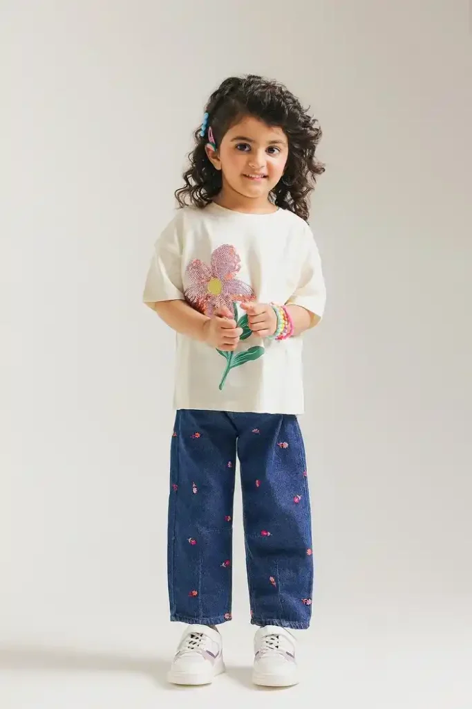Stylish off-white color ethnic kidswear embroidered top Rs:1,690 Rs:990.