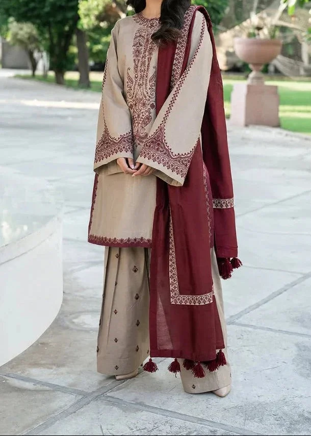 Embroidered khaddar 3 piece suit with matching shawl Rs:8,000 Rs:4,499 only.