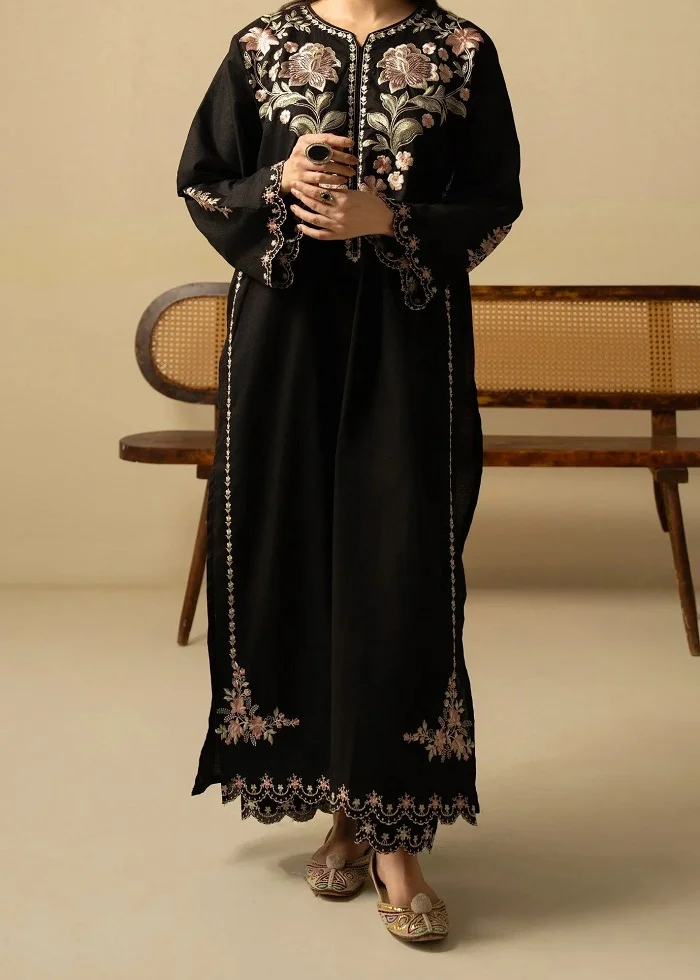 Embroidered khaddar 2pc black dress Rs:5,500 Rs:2,899.