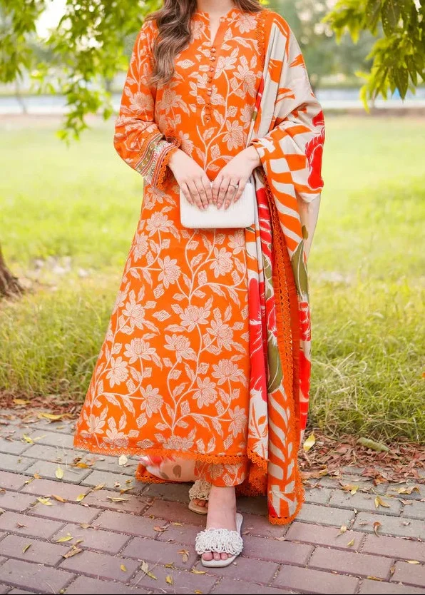 Stylish orange color embroidered Marin 3-piece suit with matching shawl Rs:8,100 Rs:4,199.