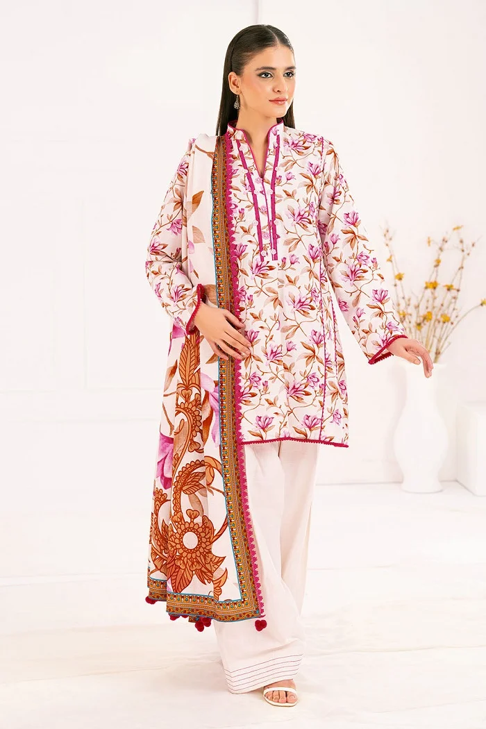 3 piece printed khaddar beige color suit Rs:4,790 Rs:3,593 only.