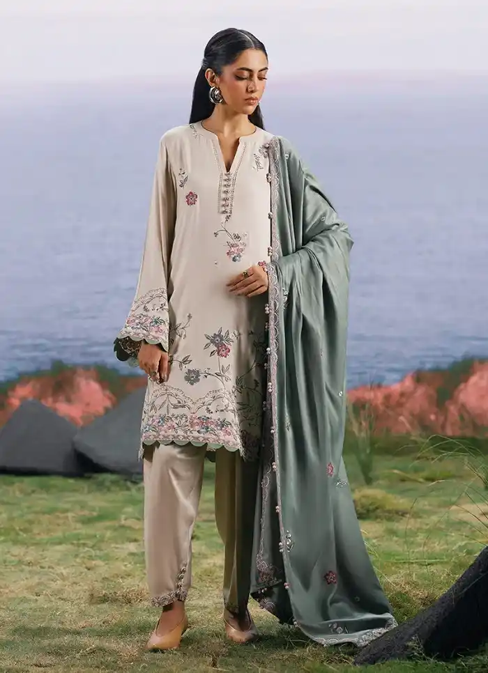 Let’s get a new winter look by wearing this embroidered cream color shirt, shawl, and trousers PKR:8,990 PKR:6,192 only.