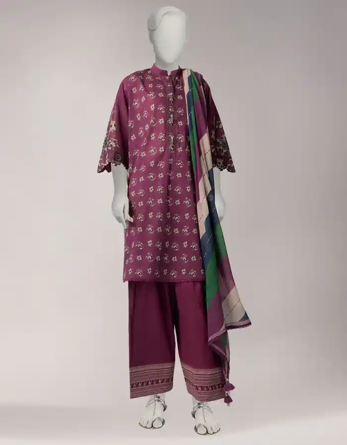 Purple color liminal unstitched 3pc suit Rs:4,490 Rs:3,143.