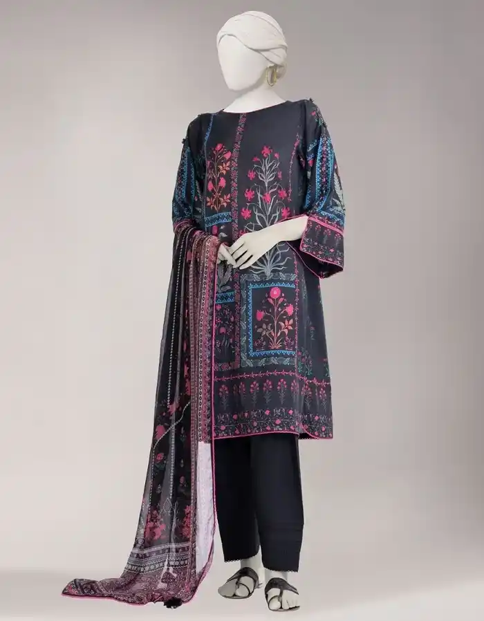 Black lawn unstitched 3 piece digital printed suit Rs:4,490 Rs:3,143Â only.