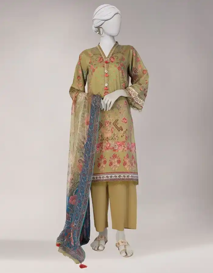 stylish cambric 3 piece green color unstitched suit Rs:4,490 Rs:3,143.