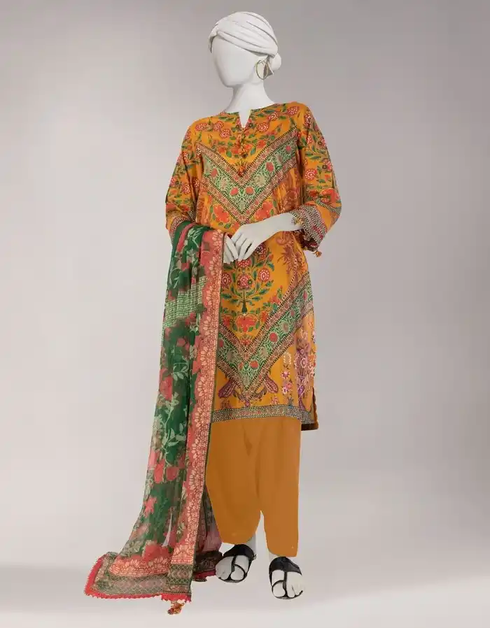 Mustard color unstitched 3 pc suit available for Rs:4,490 Rs:3,143.