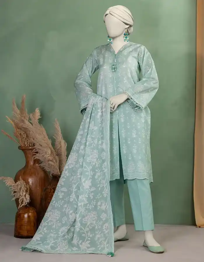 Stylish turquoise color 3-piece lawn suit PKR:5990 only.