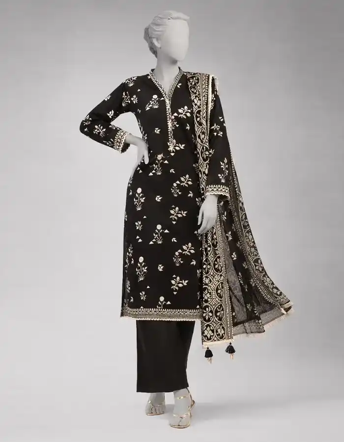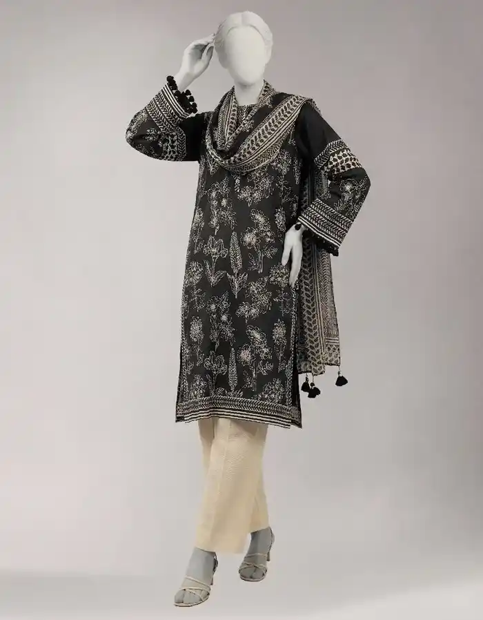 Black lawn unstitched 3piece suit with matching dupatta PKR:3,790.