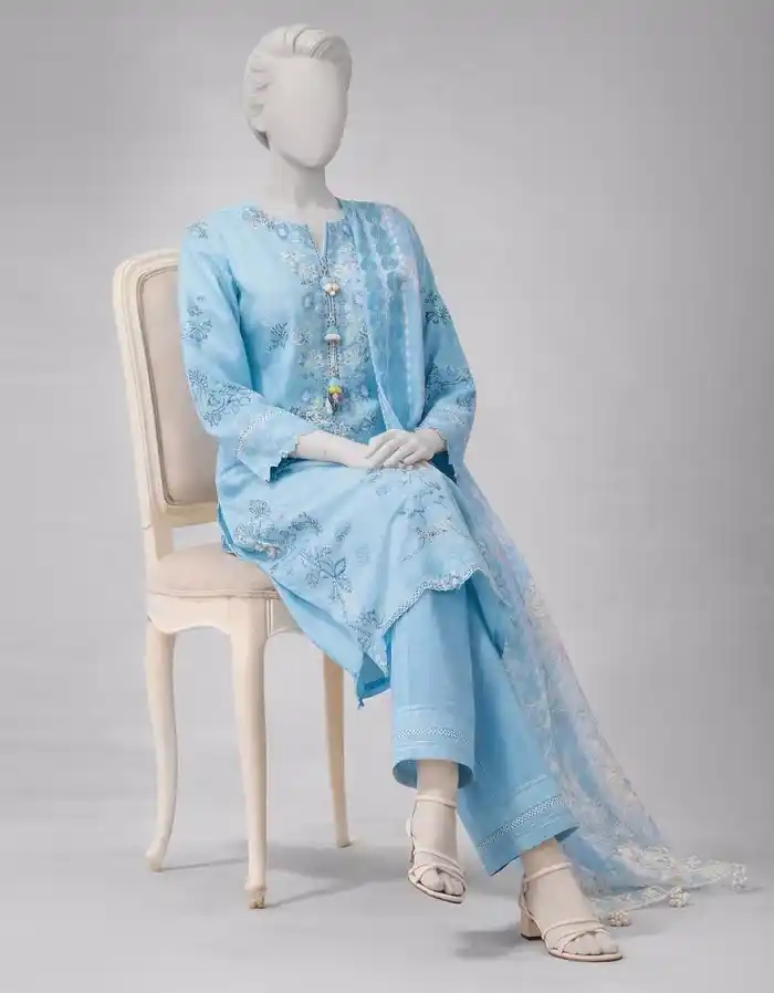 Embroidered lawn blue unstitched 3pc suit PKR:5,990 only.
