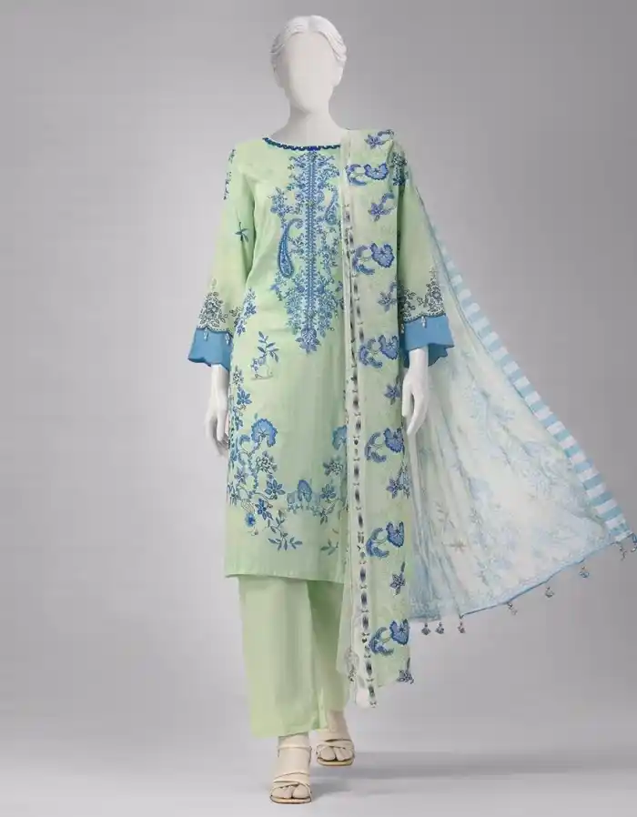 Stylish green color lawn unstitched 3pc suit PKR:5,290 only.