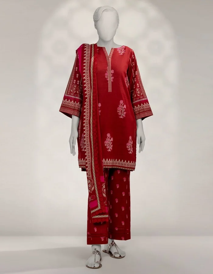Red cambric ready-to-wear 3-piece winter stitched suit for perfect formal look PKR:9,990 PKR:8,494.