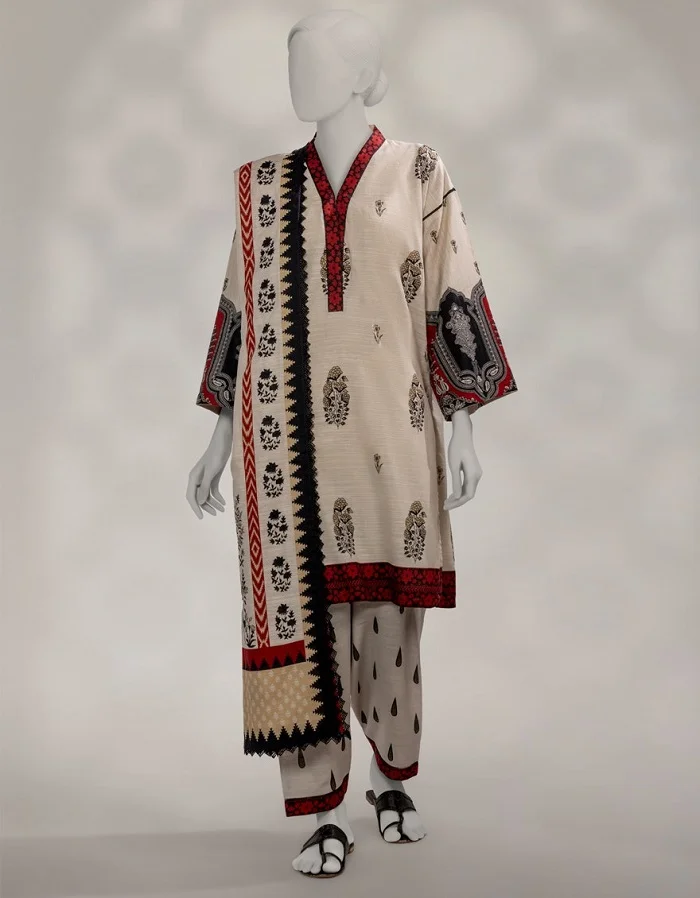 Beige color unstitched 2-piece khaddar fabric stitched suit PKR:9,240 PKR:5,190 only.