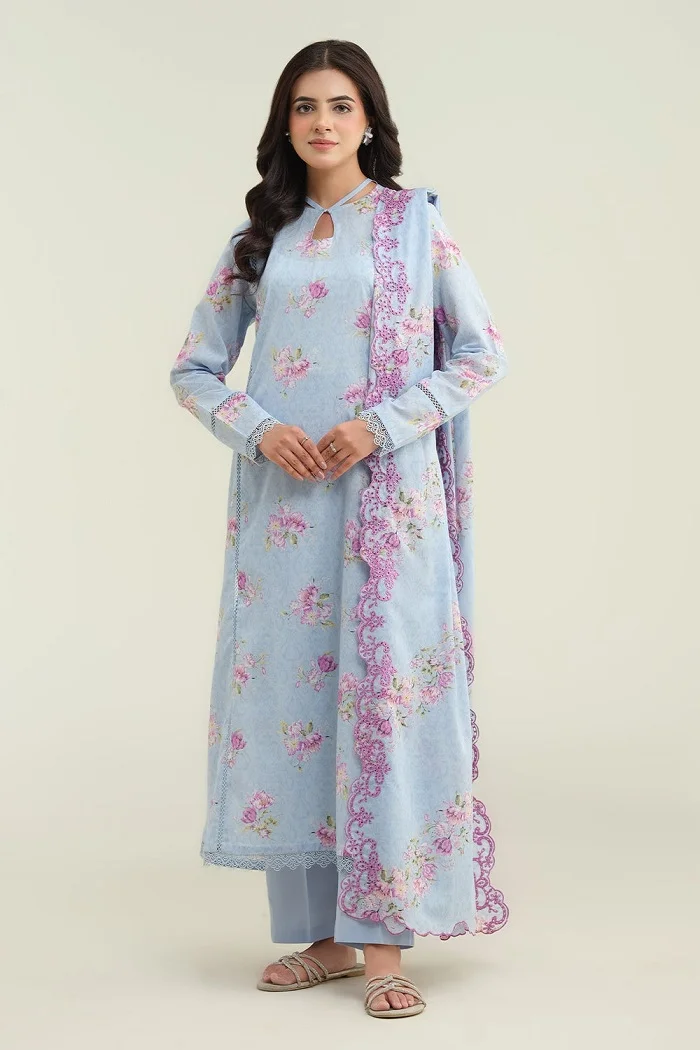 Sky blue color lawn fabric 3 pc unstitched suit Rs:8,690 Rs:7,191.