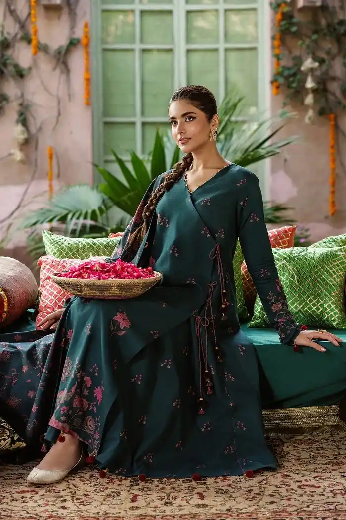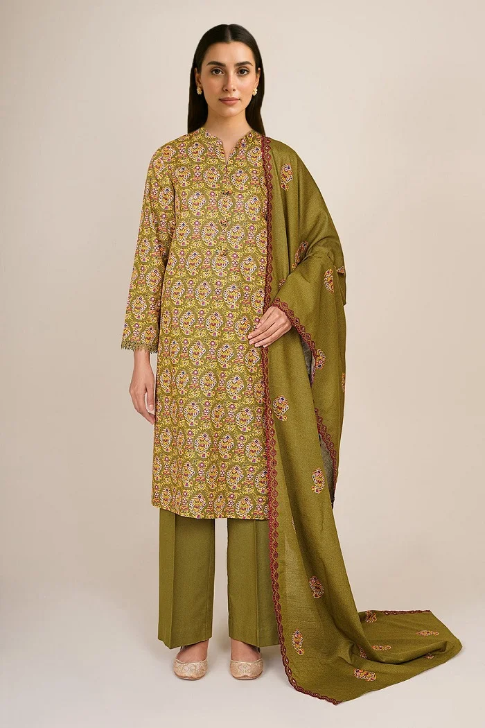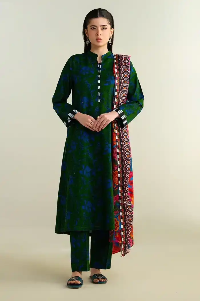 Green khaddar printed 3 piece suit Rs:10,990 Rs:8,792 only.