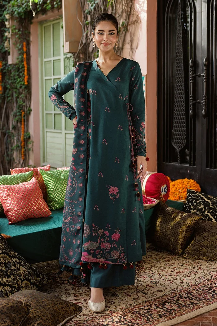 Embroidered khaddar teal blue color suit Rs:8,990 Rs:7,192.