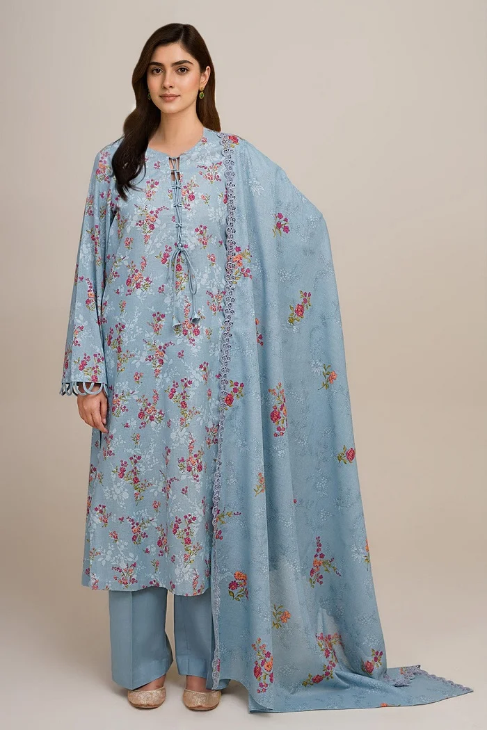 Ice blue color 3pc floral printed suit PKR:4,690 PKR:3,283.