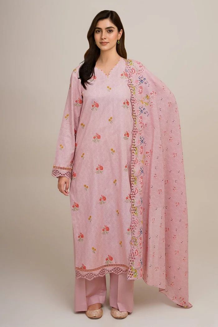 3-pc light pink color lawn embroidered printed suit PKR:8,690 PKR:4,345Â only.