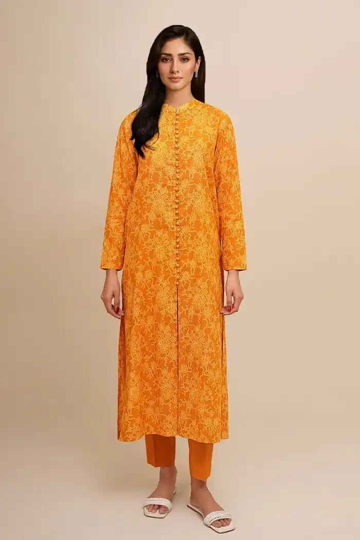 Mustard lawn 3pc printed suit Rs:4,690 Rs:3,283.