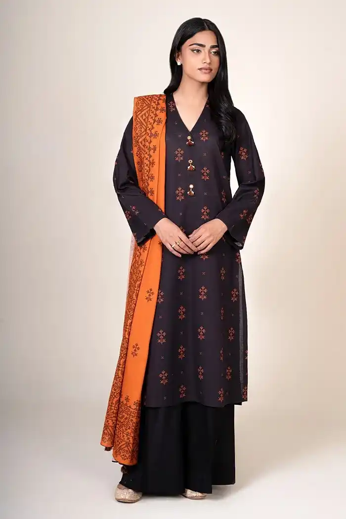 Winter 3 piece (shirt, trouser, dupatta) printed khaddar suit Rs:4,490 Rs:3,592.