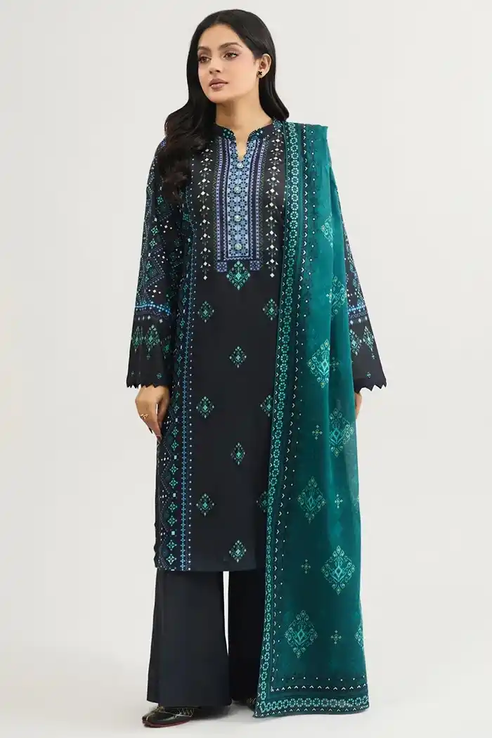 Embroidered khaddar teal blue color suit Rs:8,990 Rs:6,293.